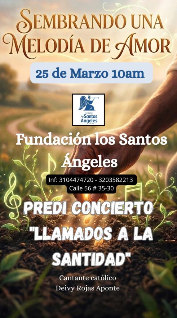 Este 25 de Marzo a las 10 am, tendrémos en nuestra Fundación los Santos Ángeles nuestro Predi Concierto LLamados a la Santidad con el cantante católico Deivy Rojas Aponte.
